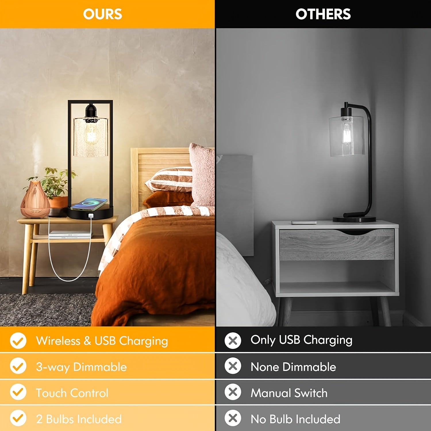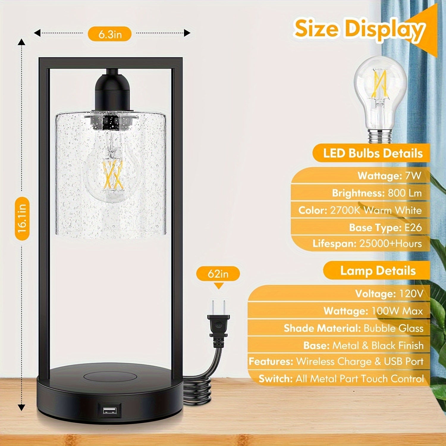 Transform your space with the BRIGHTEVER LumaTouch Set — a stylish pair of touch control table lamps designed to add warmth and convenience to your home. Featuring 3-level brightness settings, these lamps adjust with a simple tap on the metal base, offering the perfect light for reading, relaxing, or working. Equipped with wireless charging and a USB port, they make it easy to keep your devices powered without the hassle of extra cords. The elegant bubble glass shades and sleek black metal finish bring a modern industrial touch, blending effortlessly with any bedroom, living room, or office decor. Plus, with LED bulbs included, you’ll enjoy energy-efficient, flicker-free lighting from the moment you set them up.
